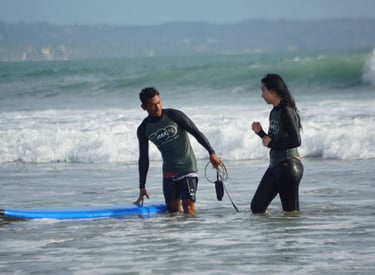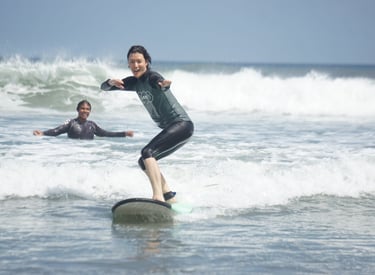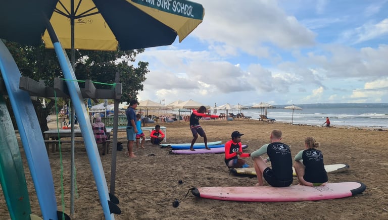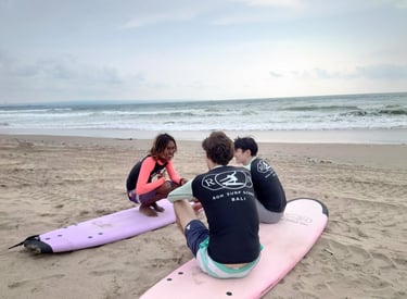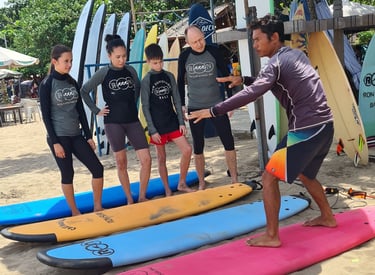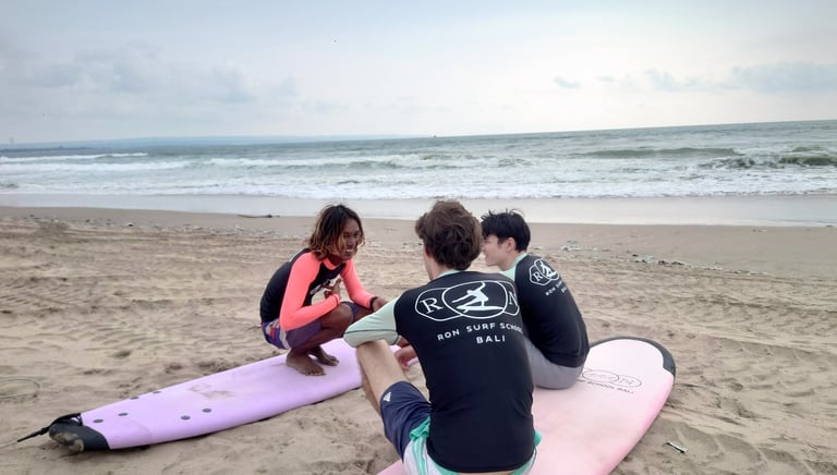 Experience personalized surf lessons at Legian Beach, taught by local expert Roni and his team. Our small groups ensure safety, fun, and quality instruction for all skill levels in a friendly atmosphere.