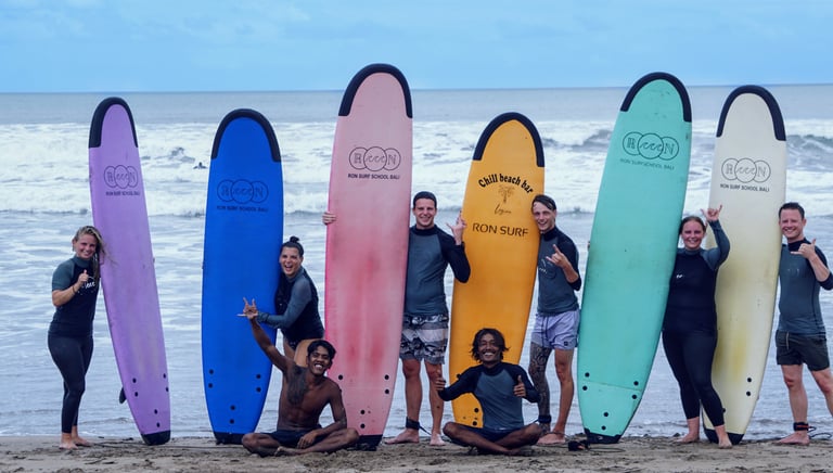 Experience quality surf lessons at Ron's Surf School in a friendly, safe environment on Legian Beach.