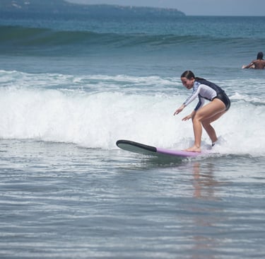 Experience personalized surf lessons at Legian Beach, taught by local expert Roni and his team. Our small groups ensure safety, fun, and quality instruction for all skill levels in a friendly atmosphere.